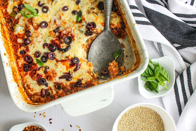 Cette casserole réconfortante rappelle les saveurs de la pizza, mais en version plus nutritive avec du quinoa. Riche en protéines et naturellement sans gluten, le quinoa sert de base à ce plat gourmand, garni de sauce tomate, de fromage fondant et de vos ingrédients préférés. Facile à préparer, cette recette offre une option équilibrée, sans compromis sur le goût.