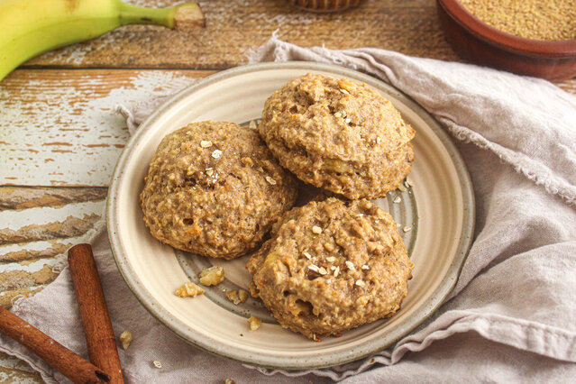 Galettes aux bananes, noix et graines de lin