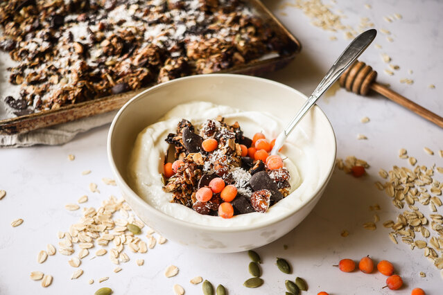 Ce granola maison à l’avoine, au tournesol et au miel combine des ingrédients simples, nourrissants et délicieusement parfumés. Il offre une texture croustillante et un goût riche, relevé par un enrobage au beurre de tournesol, au miel et aux épices. Parfait pour accompagner le yogourt, le lait ou pour grignoter tel quel, ce granola est une option idéale pour un déjeuner énergisant ou une collation saine et gourmande.