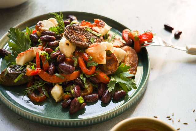 Salade d’haricots aux herbes et pommes de terre grillées