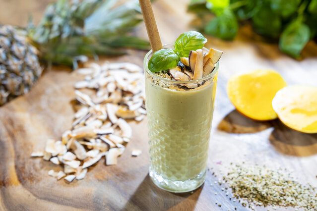 Savourez un smoothie rafraîchissant et nourrissant! Préparé avec de la mangue et de l’ananas, ce smoothie est parfait pour faire le plein d’énergie et de saveurs exotiques. Idéal pour le déjeuner ou une collation santé!
