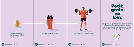 En 2019, la toute première campagne de promotion des Producteurs de grains du Québec (PGQ) est lancée : « Petit grain va loin. »
